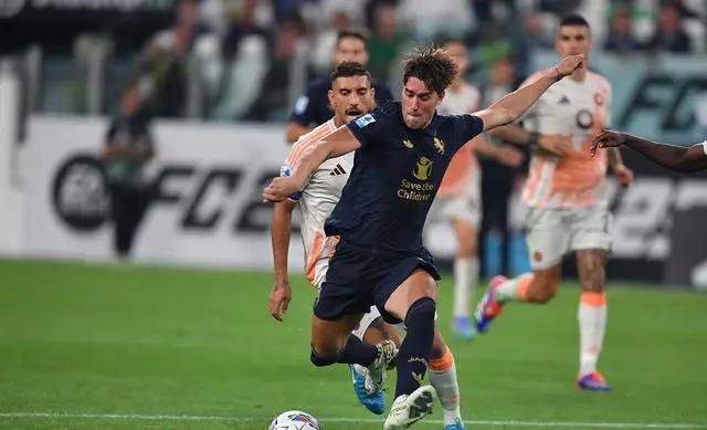 德罗西也选择了4-2-3-1阵型,斯维拉尔守门,切利克、曼尼奇、恩迪卡和安吉利诺组成防线,克里斯坦特与皮西里搭档双后腰,中场佩莱格里尼、苏莱和萨勒马科尔斯三人把控,新援多夫比克顶在前锋位置。两队控球率接近,防守端的投入极大,导致对方难以形成有威胁的进攻。尤文图斯在全场8次射门中仅有1次射正,罗马则7次射门中同样只有1次命中目标。