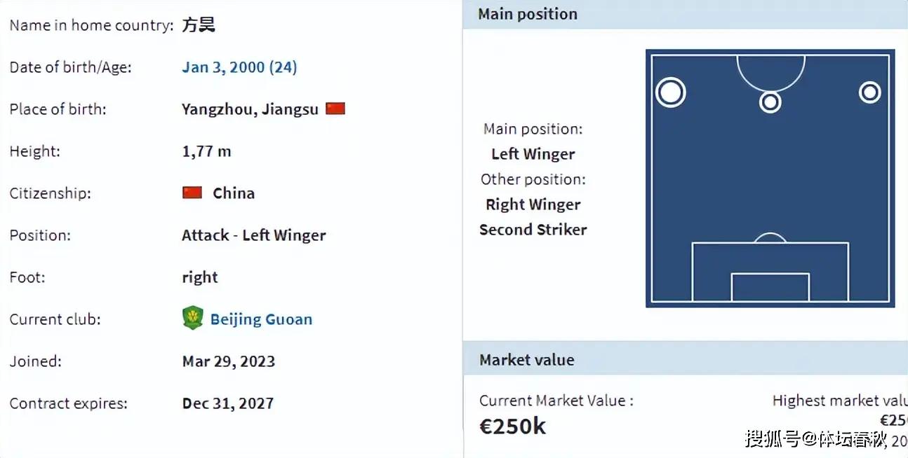 好在,为了留住方昊,国安俱乐部已经与他续签了一份新的长约。根据著名足球转会网站——德转网的数据显示,方昊已经与国安完成续约,他的新合同将于2027年底到期。