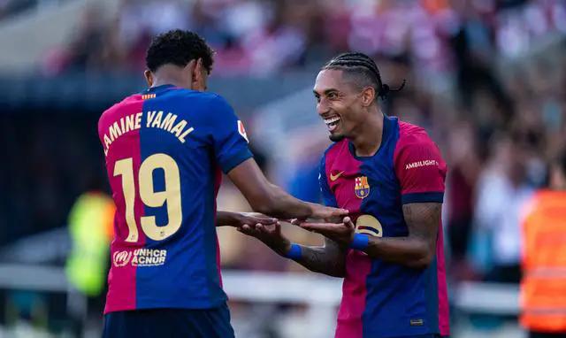 除了亚马尔,弗里克激活了拉菲尼亚。新赛季开始后,拉菲尼亚几乎拿出“现象级”表现,打进3球,有2次助攻,场均评分8.45分,高居西甲所有球员之首。