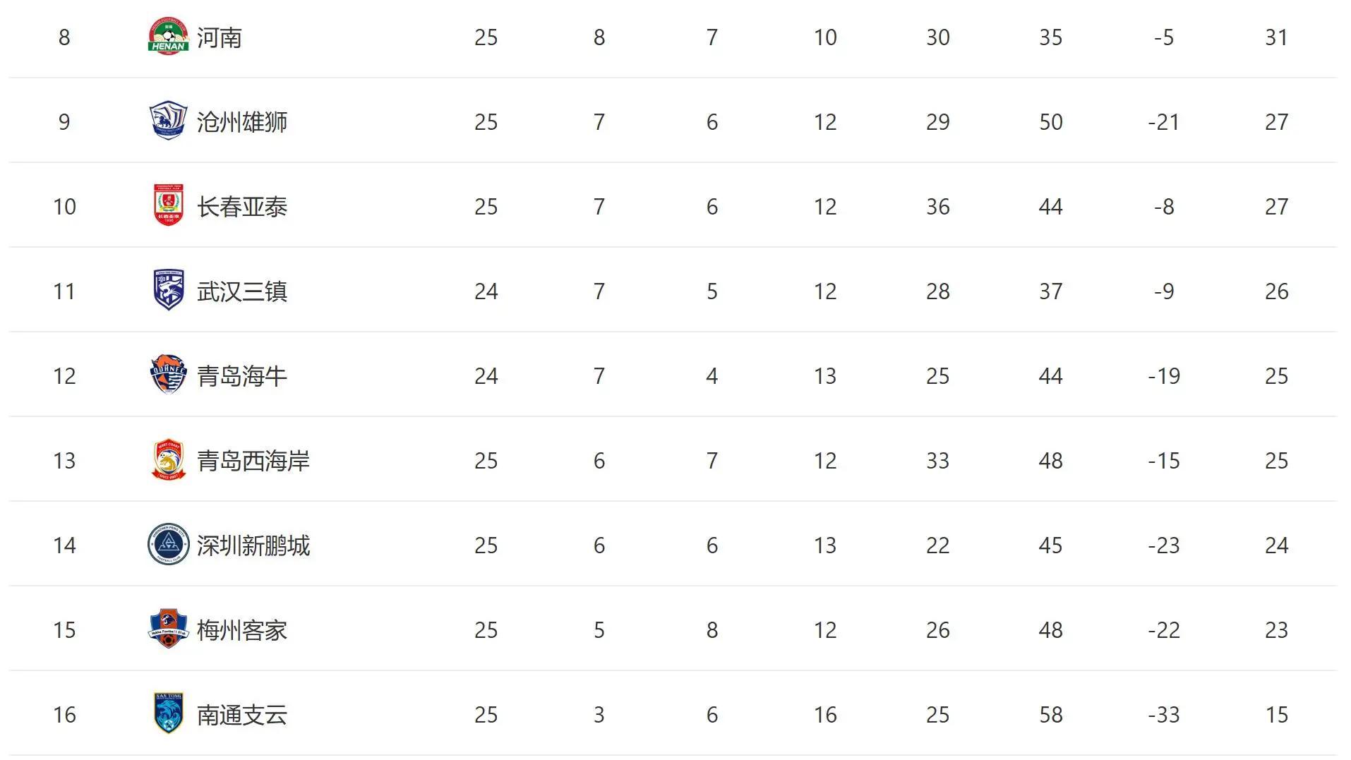 而在保级球队里面,南通支云已经是垫底, 之前过于松弛,25轮的比赛,他们只是拿到3场比赛胜利,平了6场,输了16场,特别是失球数方面,他们是丢了58个球,几乎是上海申花4倍。