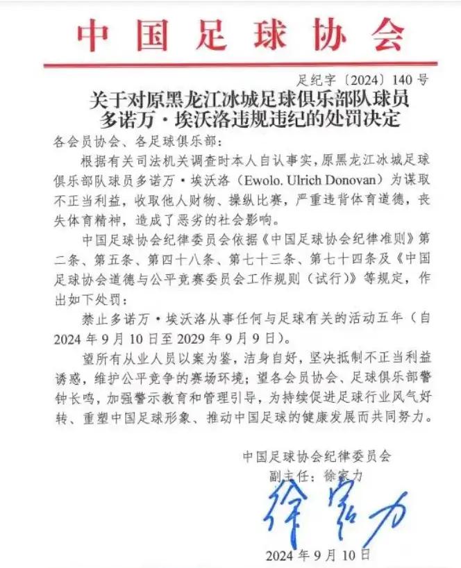 多诺万为了自己的举动如今被中国足协禁足了5年,这份禁足令如今已经上报给国际足联,多诺万很有可能会和孙准浩一样失去自己的工作,他也将为自己的行为付出最惨痛的代价。