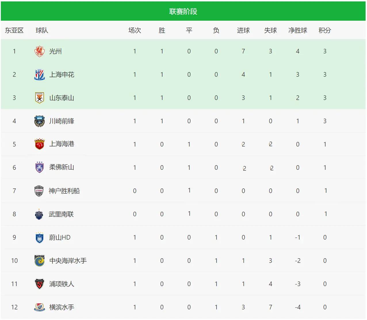 至此,亚冠第一轮东亚区的比赛全部结束,中超成为第一轮表现最好的联赛,三支出战的中国球队无一败绩,并且申花、泰山都是完胜,而韩国浦项制铁和蔚山现代都告负,日本的横滨水手更是3-7大败。在国家队战绩堪忧的时候,中超的俱乐部队无疑成为了最亮眼的表现。
