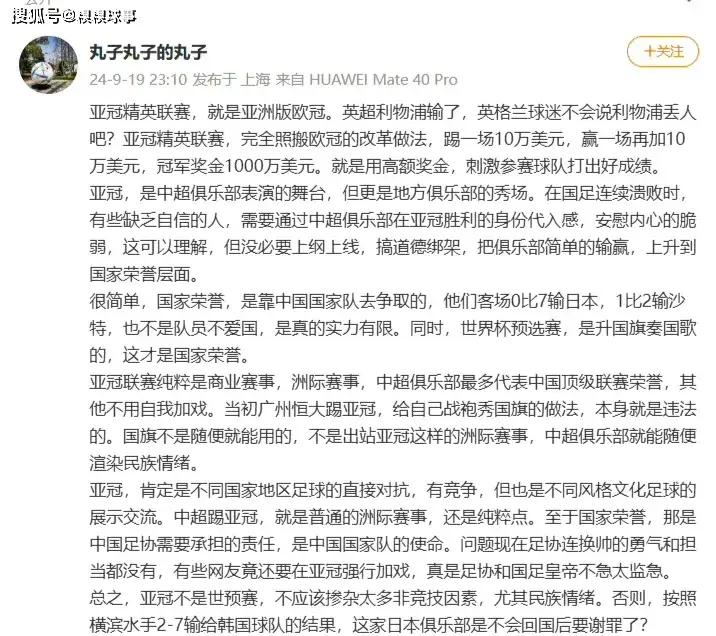 上海海港记者陈华发布了对于中超球队参加亚冠联赛的一些看法,其中表示中超球队参加亚冠联赛是纯商业行为,与国家荣誉无关,国家荣誉是足协的事,是国家队的事。此言论一出,立马引来热议。