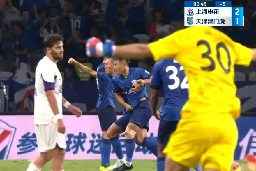 开场后不久,天津津门虎就在禁区内打进一个非常漂亮的头球。后面的比赛上海申花一直在追赶,但是只开花不结果,先后换了4人上场,也始终无法敲开方镜淇把守的大门。比赛第82分钟,斯卢茨基打出了最后一张底牌——于汉超!