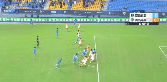 在比赛进行到第26分钟时,梁少文开出左侧任意球,郑浩乾禁区中路捅射破门。视频助理裁判介入判罚,经过足足2分钟的回放确认后,最终裁定进球有效。然而,这个进球存在争议,因为处于越位位置的刘伟是否参与进攻成为焦点。慢镜头显示,刘伟明显处于越位位置,并且之后撞到了海牛球员。