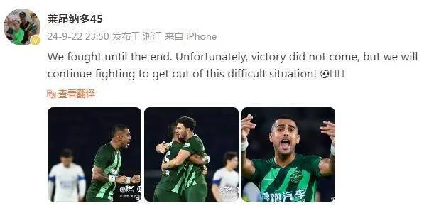 对此,莱昂纳多在社媒遗憾地写道:“我们战斗到了最后,但不幸的是,胜利却没有到来。我们将继续努力以摆脱困境!⚽️”