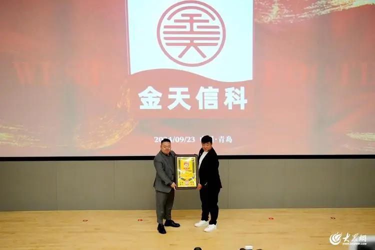 青岛金天信科企业服务有限公司总经理胡鹏在致辞中说,他也是一名西海岸队的忠实球迷,在看台上见证了球队首次亮相中超赛场,以及在比赛中的勇敢顽强、永不放弃的精神,也正是这种拼搏的精神和信念,让他坚信,双方的合作一定会让球队如虎添翼,在中超赛场上站稳脚跟,继续为青岛而战,为西海岸新区而战!