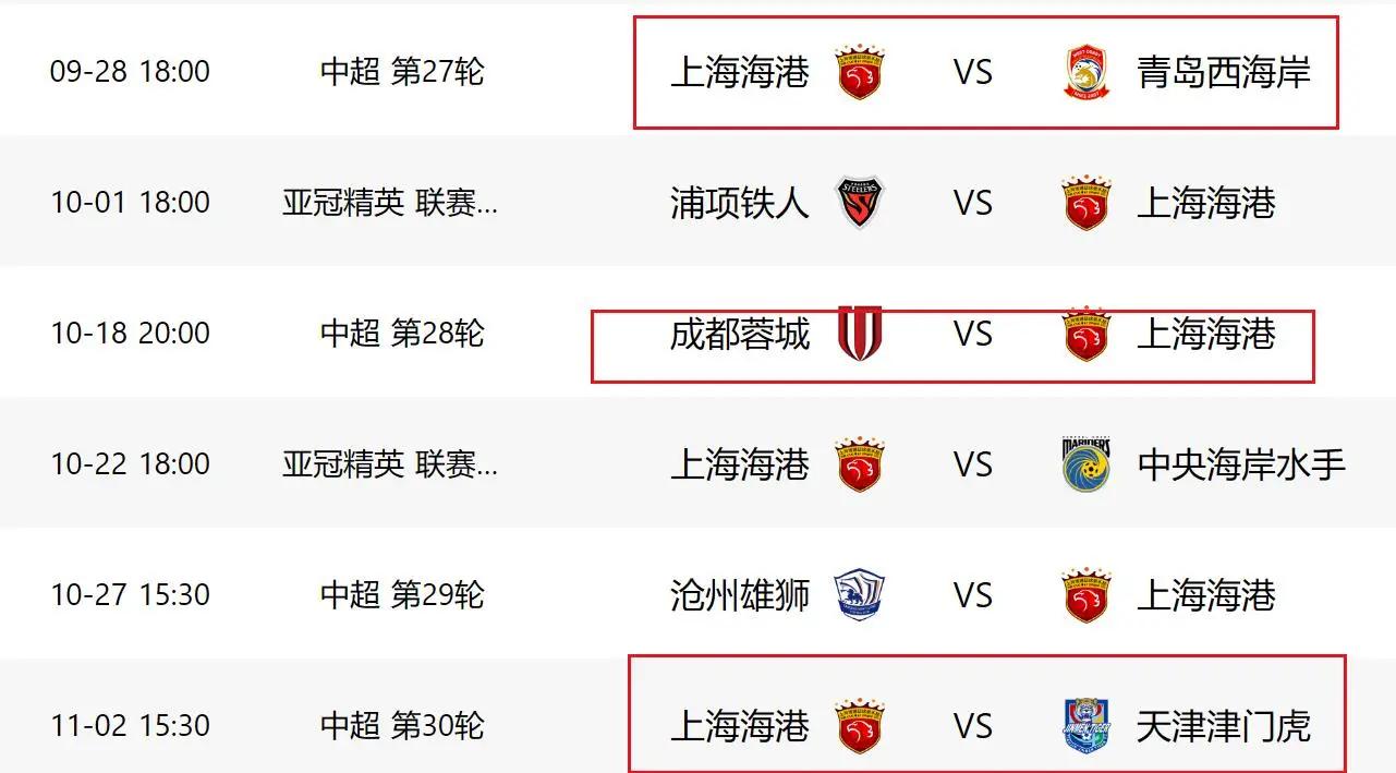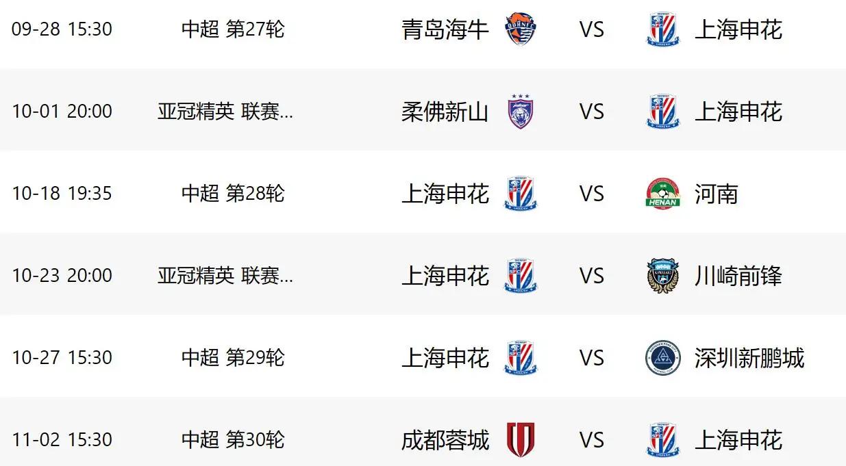 目前上海申花在中超最后四轮对手有青岛海牛、河南、深圳新鹏城、成都蓉城,像打青岛海牛的比赛,估计会是特谢拉、马纳法无法上场, 然后朱辰杰待定, 但是他们还有10月1日去打马来西亚比赛,到现在为止申花的中后卫蒋圣龙一直都没有休息过,从9月份国家队比赛到足协杯德比,蒋圣龙都是打满全场的,蒋圣龙的疲惫也导致申花的后防线不稳,平均每次比赛都会被进球。