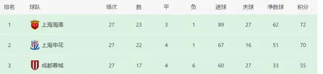 进入收官阶段,仅剩下最后三轮比赛。上海海港以23胜3平1负积72分位居榜首,上海申花则以22胜4平1负积70分紧随其后。上海海港领先2分,掌握着冠军归属的主动权。最后3轮比赛如果上海海港连胜,即使上海申花全胜也难逆转局面;反之,一场失利可能让上海海港功亏一篑。