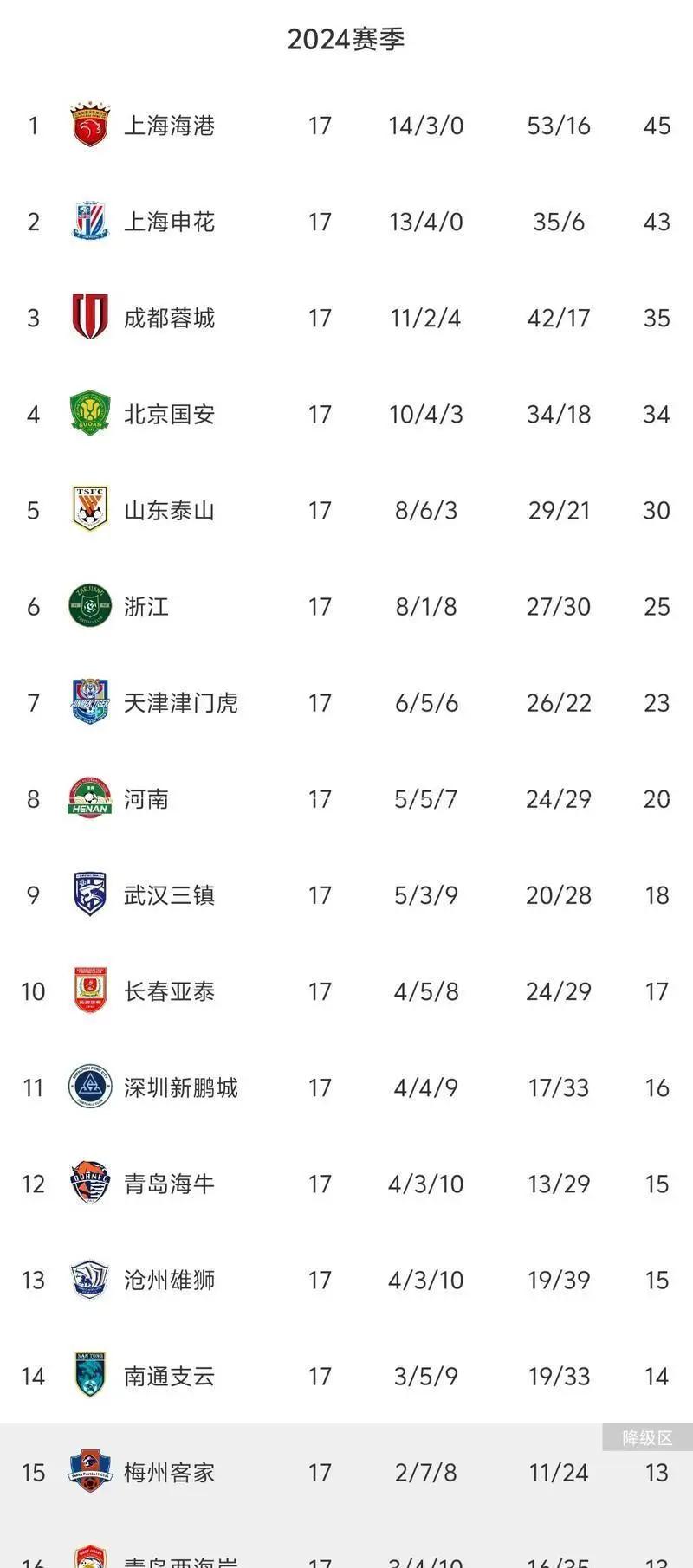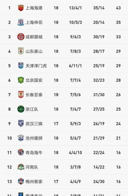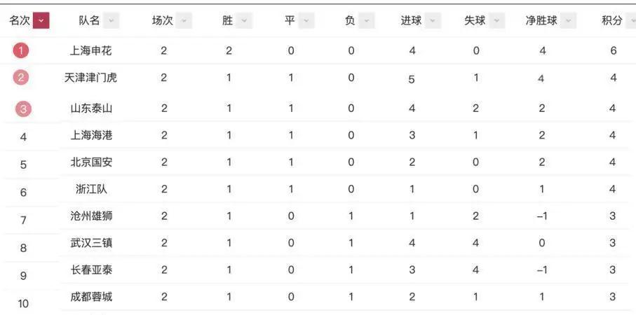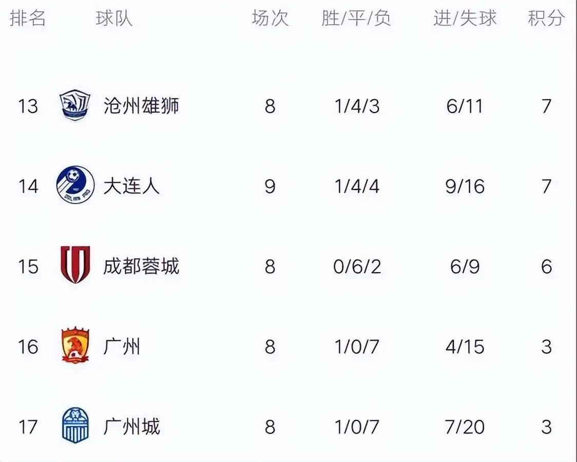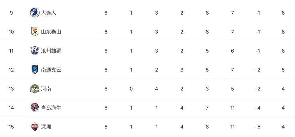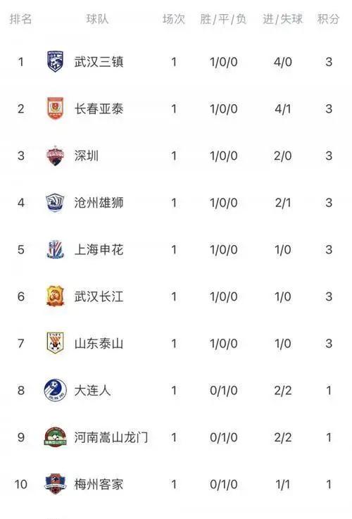 1. 长春亚泰:积分30分升至第10位,最快本轮保级