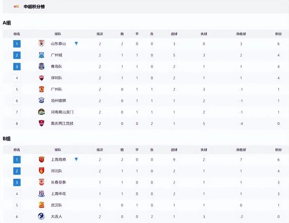 2. 青岛西海岸:两连败排名降至第12位