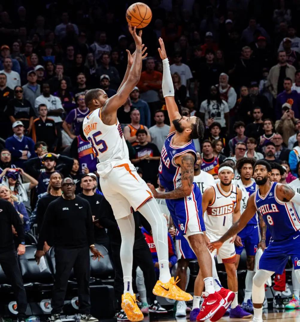 NBA常规赛继续进行,费城76人做客菲尼克斯太阳,本场比赛76人这边夏季最大牌引援保罗乔治复出,太阳这边全主力出战。此前他们已经取得了一波4连胜来到西部第二的位置,可谓状态火热。而76人这边由于恩比德和乔治的缺席,球队开赛以来难求一胜,仅仅打出了1胜4负的开局。