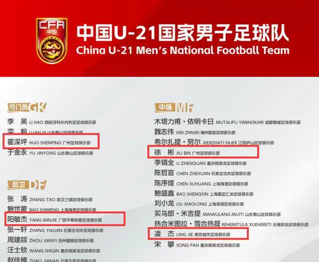 青训梯队成果显著!霍深坪、徐彬入选U21国家队