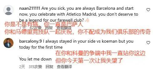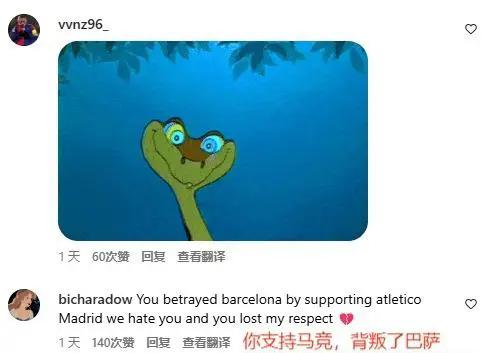 “你支持马德里竞技,却离开了巴塞罗那,我们对你感到恼火,你失去了我的尊重!”