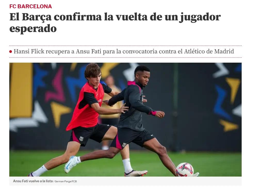 这个周末,西甲联赛将迎来一场焦点之战,巴萨将坐镇主场迎战马竞。然而,命运似乎又给法蒂开了一个小小的玩笑,亚马尔因伤缺席,右边锋的位置出现了空缺。《世界体育报》透露,费兰 - 托雷斯和费尔明将为了这个位置展开激烈的竞争,而刚刚伤愈复出的法蒂,或许也将得到一些出场机会,这对于他来说,既是一次难得的机遇,也是一次巨大的挑战。