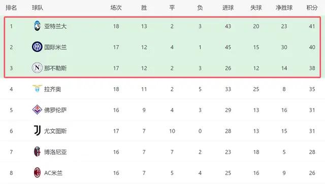 然而,亚特兰大在争冠过程中势必面临巨大压力,尤其是来自国米的挑战。卫冕冠军在本轮客场以3-0轻取卡利亚里,目前他们与榜首之间的差距仅为1分,反超的希望正在显现。