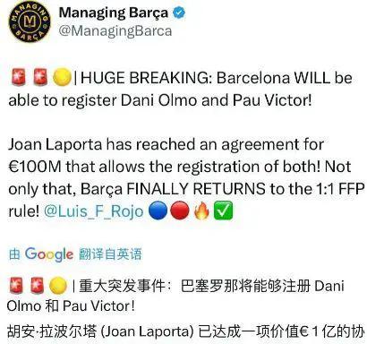 科贝电台的记者Pedro Morata表示:“巴萨若希望在12月31日前增加耐克赞助的收入,以带来约8000万至8500万欧元,才能重新回到1比1的财政规则下,从而使奥尔莫得以注册。”如果目前的VIP坐席交易性质类似于先前巴萨的工作室出售,那将无济于事,巴萨迫切需要的是真正的付款交易。