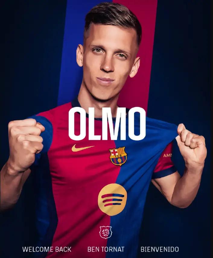 去年夏天,奥尔莫贡献3球2助攻,帮助西班牙捧起欧洲杯冠军。奥尔莫高光表现得到母队巴萨的召唤,从而在夏窗以总价6200万欧(5500万固定+700万浮动)转会费回归诺坎普。