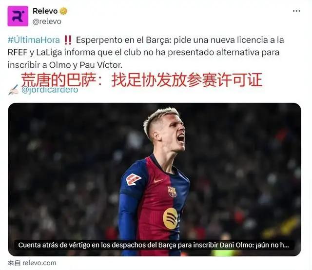 2024年12月31日23点59分,奥尔莫在西甲的注册仍未完成。