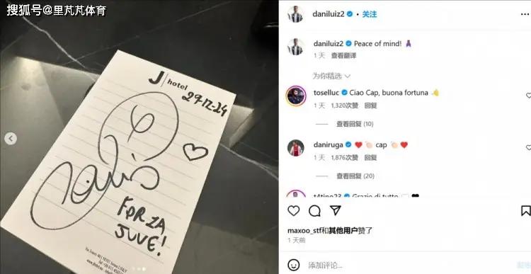 达尼洛本人更新了社交媒体写道:“心平气和!”并且配上了三张配图,一张是他在雪地里赤膊张开双手的照片,一张是写着‘重置、重新出发、重新聚焦’的配图,最后一张则是达尼洛用尤文酒店便签写下的签名以及‘加油尤文!’的字样,落款日期是2024年12月29日。