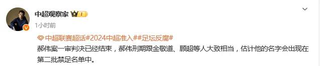 中国足协9月份公布了第一批禁足名单,60人接受行业处罚,其中43人被终身禁足,泰山队中,除了金敬道、郭田雨等前中国国家队球员外,还包括韩国外援孙准浩。而对于即将公布的第二批名单,媒体人苗原此前曾透露:“第二批行业处罚名单很快就会公布,有一个名字会让所有人感到惊讶,我听到这个名字时感到非常震惊,他的情况与汪嵩类似,陷入了陷阱,参与了假球。