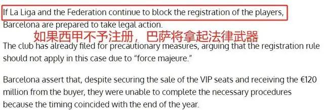 巴萨对于未能及时注册的原因,归咎于银行方面的问题。他们的主席拉波尔塔正奔赴迪拜与卡塔尔财团商谈未来的VIP包厢预售。这时候,好消息是,巴萨已经收到1.2亿欧元的资金,但是坏消息是,银行系统关闭了。