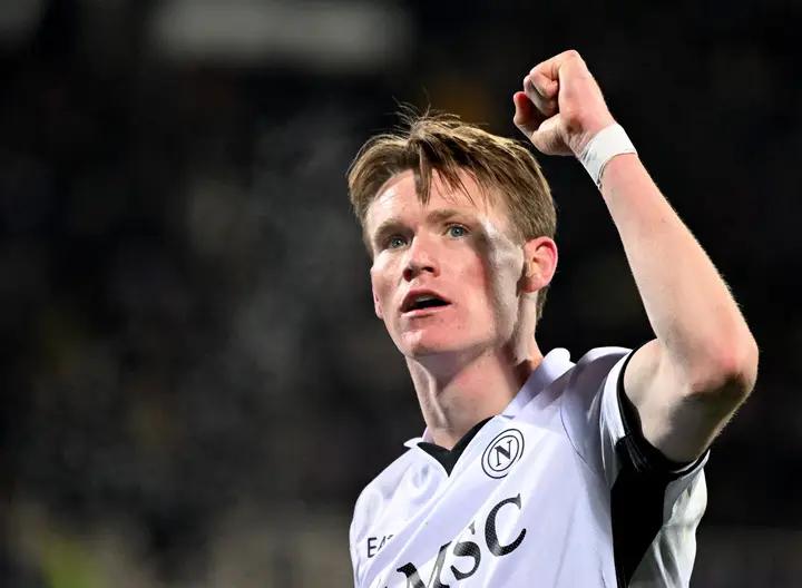 那不勒斯球员麦克托米纳庆祝进球。新华社发