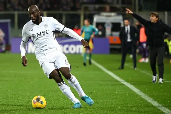 那不勒斯球员卢卡库(左)在比赛中。新华社发