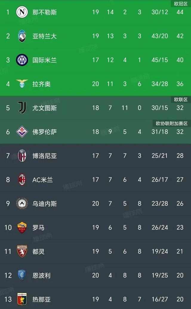 随着意甲第20轮的一些比赛结束了,联赛的形势又有了新变化!亚特兰大进攻无力,被乌迪内斯0-0逼平,真是翻车了!莫伦特助攻加进球,但莱切还是3-1战胜了恩波利,恩波利已经5轮不胜了!国米现在离榜首还有4分差距,对罗马来说是个好消息,因为他们的竞争对手乌迪内斯和恩波利都没赢。我们来快速看看这些比赛的情况和最新的联赛排名吧!