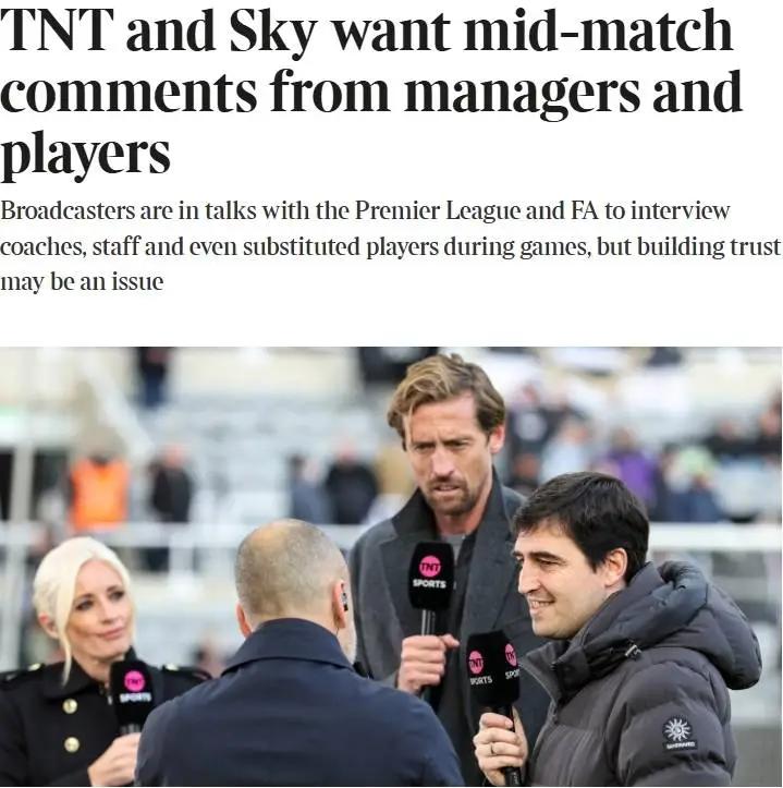 直播吧01月24日讯 据《泰晤士报》消息,转播商目前正与英超联赛和英足总进行谈判,希望在下赛季的比赛中途能够采访经理、教练甚至替补球员。