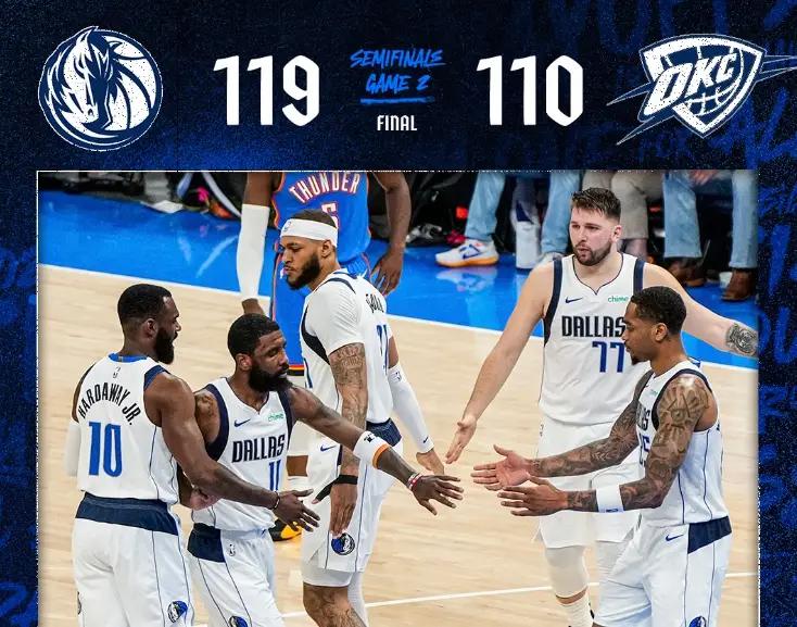 比赛一直进行到最后44秒,欧文得分之后,主动采取犯规。球队才鸣金收兵,比分定格119-110!大比分来到1-1,独行侠以西部第5的身份逆袭了一场比赛,大比分来到1-1!