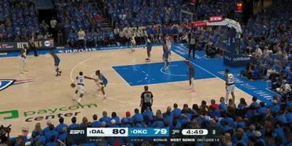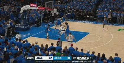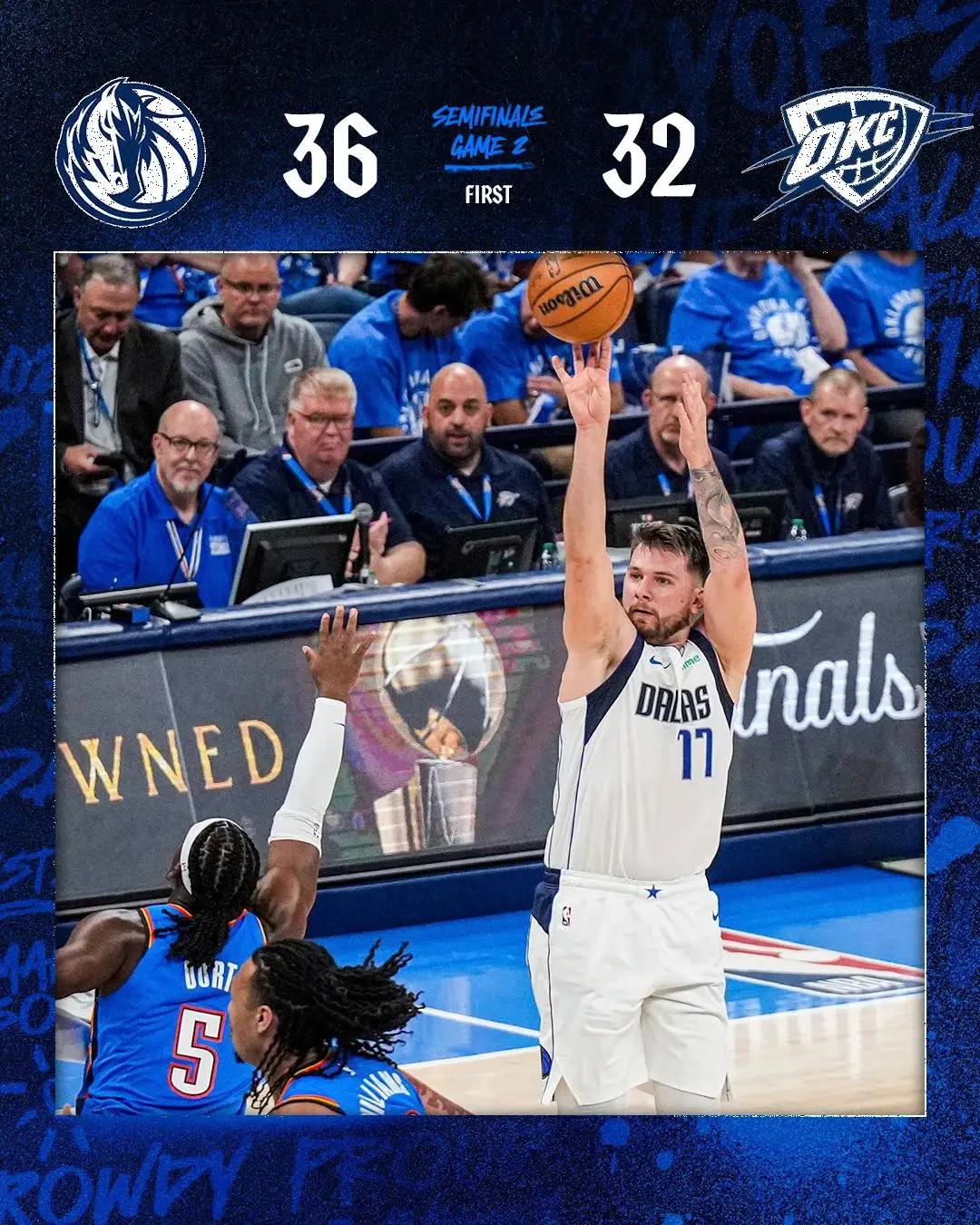 独行侠半场三分24中12,命中数追平G1全场。雷霆三分16中6,三分球比独行侠少6个,但是内线得分32-24赢了8分。下半场开始,东契奇体力下降,雷霆提速反击,连续3记三分飙进,一波13-4直接反超。东契奇膝盖出血,尽力了!