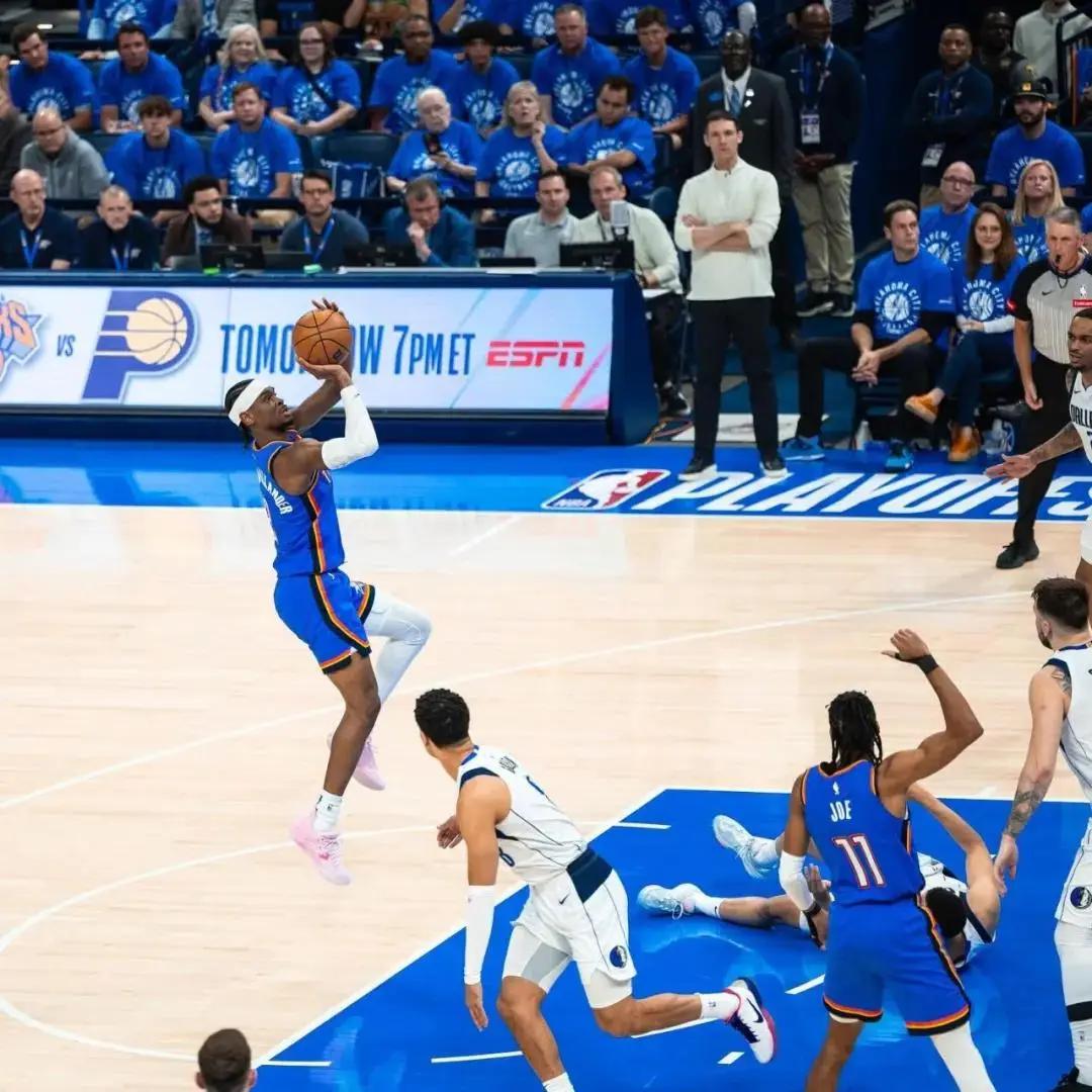 说回比赛,独行侠开局13-2,东契奇三分2中2,开场连得8分。独行侠进攻先从内线打起,等到雷霆收缩防线,再把球传到外线。独行侠多点开花,前8次三分出手进了6个。独行侠一度领先10分,雷霆没慌,霍姆格伦首节1.4秒压哨。