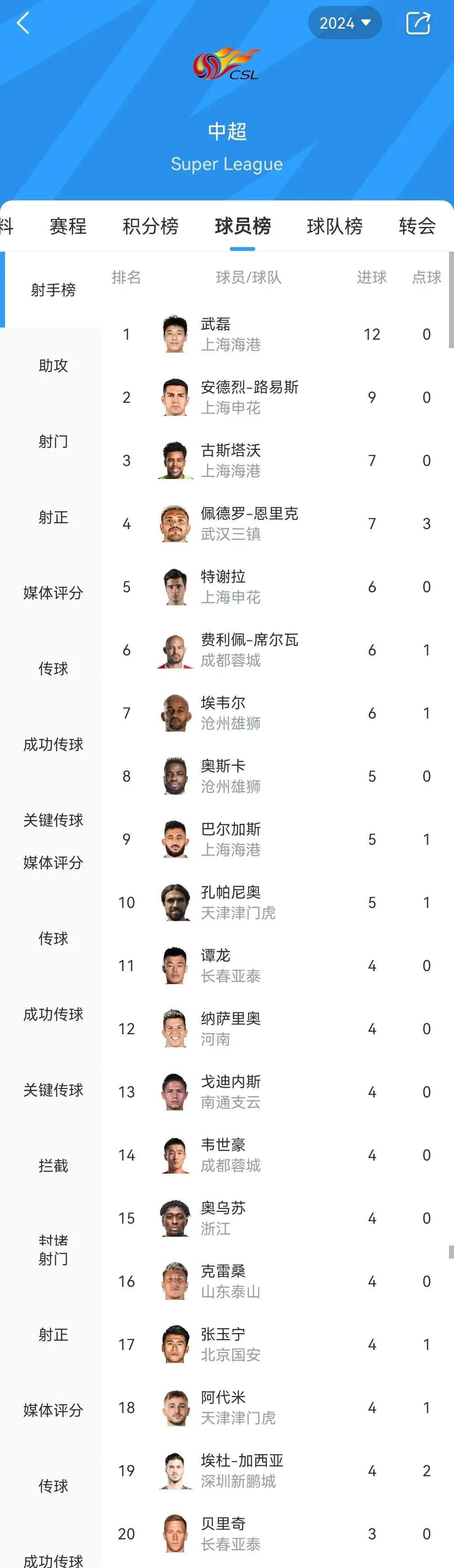 本轮上海海港主场5-2大胜长春亚泰,武磊2射1传,以12球领跑射手榜。海港在少赛一场的情况下积24分,与本轮被天津津门虎0-0逼平的“头羊”上海申花只有3分差距。武磊状态火热,从另一个角度映衬了中超本土前锋后继乏力的现实,射手榜前10名里只有他一位本土球员,前20名里谭龙、张玉宁、韦世豪分别打进4球,不见新人冒头。而且,5外援政策也确实有压缩本土球员生存空间之嫌。