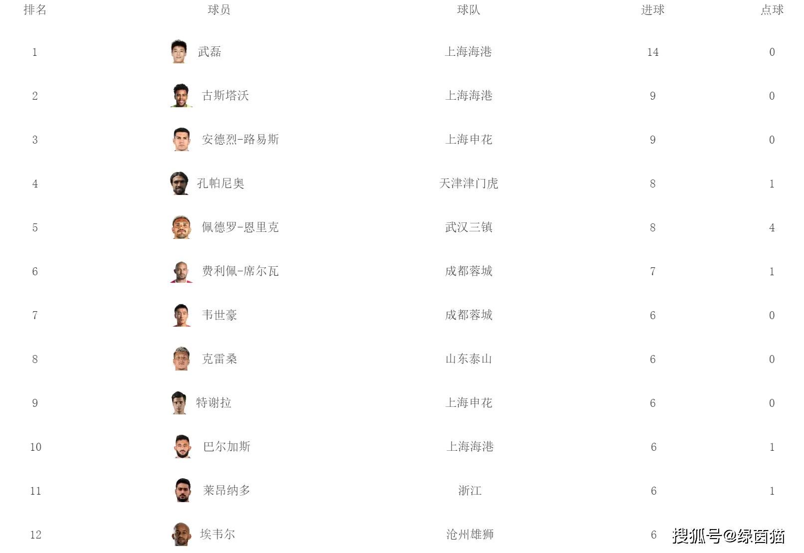 在射手榜层面,武磊已经打进14球,强势领跑,他的表现有目共睹,非常出色。武磊的队伍古斯塔沃排名第二,另一支来自上海的球队埃德森-路易斯的进球数也快上双了,本赛季对于金靴的争夺也很激烈。
