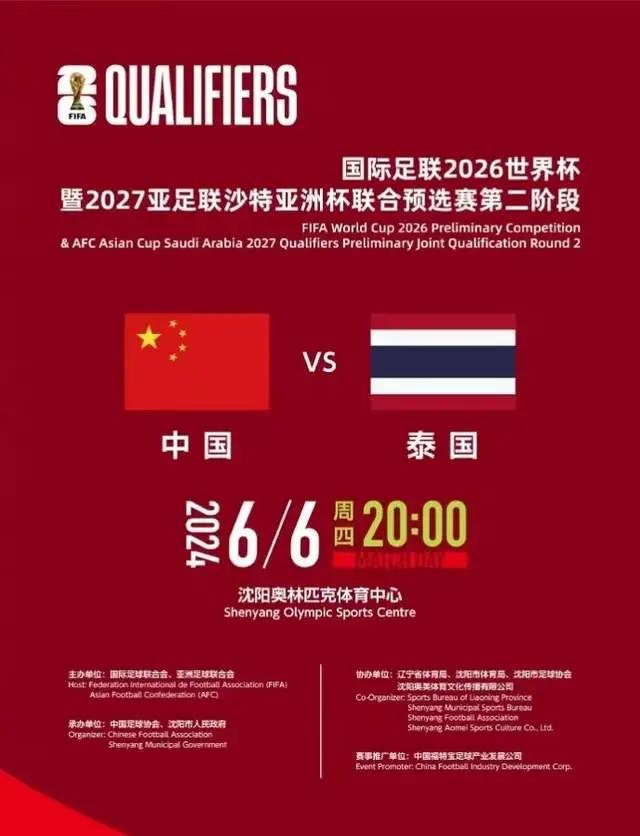 北京时间6月6日晚上20时,世预赛亚洲区第二阶段C组第5轮的比赛,国足将会在主场(沈阳奥林匹克体育中心)迎战泰国男足,此役也是国足晋级世预赛亚洲区第三阶段,也就是18强赛的生死之战,到时央视CCTV5肯定会直播这场国足世预赛的生死战。