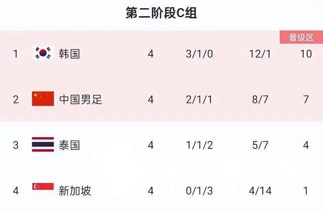 世预赛亚洲区第二阶段C组前4轮积分情况,韩国10分领跑,国足7分排名第二,泰国4分排名第三。由于国足客场2-2战平新加坡,泰国还有主场对阵新加坡,因此目前出线格局就是国足与泰国争二。世预赛亚洲区第二阶段C组第5轮比赛最为关键,国足vs泰国,谁赢谁晋级;若国足不赢泰国,基本上出线就没啥希望了。