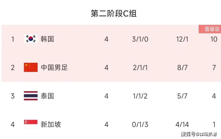国足目前2胜1平1负积7分,在世预赛第二阶段排在小组第2。