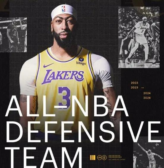 据统计,这是浓眉效力湖人期间第2次入选最佳防守阵容一阵,他也成为湖人队史第6位多次入选防守一阵的球员。