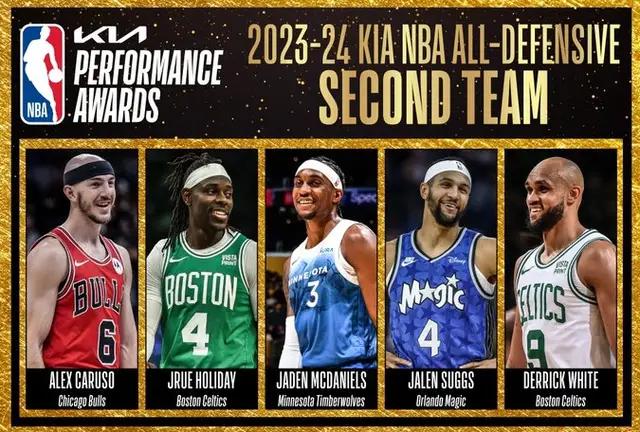 二阵的名单包括:卡鲁索、霍勒迪、麦克丹尼尔斯、萨格斯、怀特。绿军两大悍将入选,算是对他们铁血防守的最大褒奖。