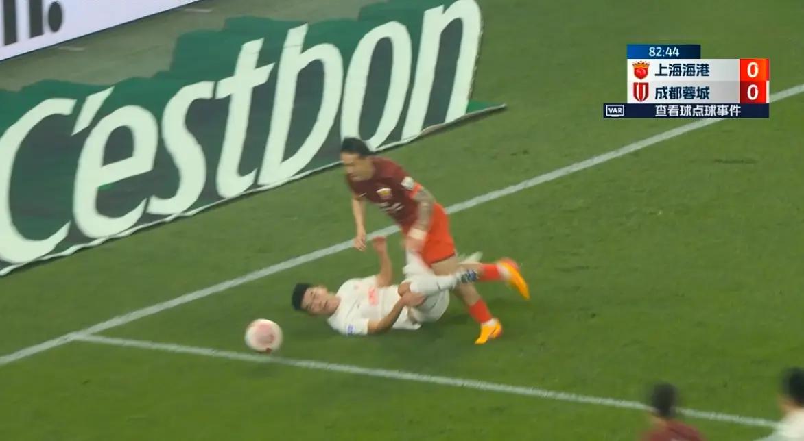 比赛一直胶着,直到成都蓉城替补后卫胡睿宝“送点”,帮助上港1球领先。这个点球,要怪就怪胡睿宝故作聪明抬腿太高,上港球员冯劲有故意撞上摔倒的嫌疑。