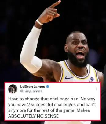 实时看球的老詹,更推写道:“必须改变挑战规则!不可能你成功挑战了2次,却在比赛剩下的时间里无法再挑战了!这完全没有道理!”