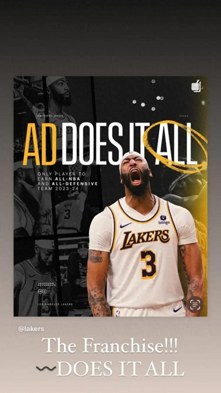 詹姆斯转发浓眉海报,配文写道:“球队顶梁柱!他做到了一切!”