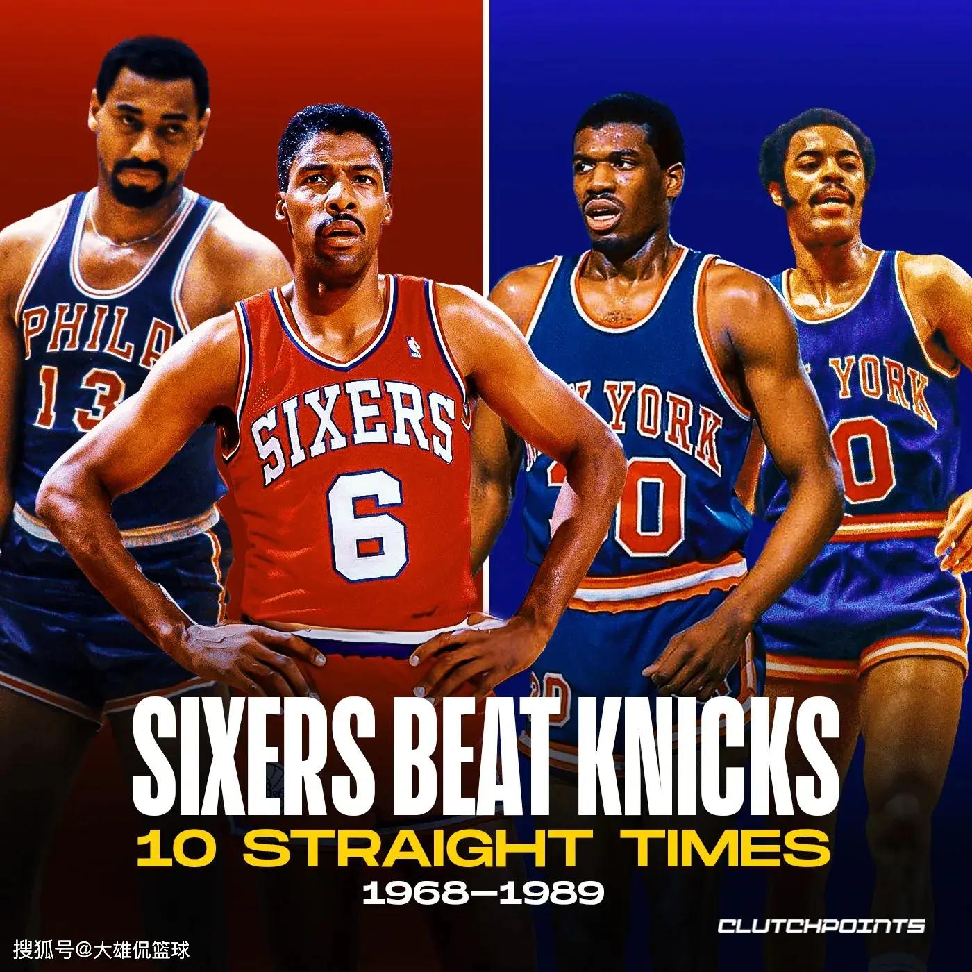 费城76人从1968年到1989年的季后赛,在面对纽约尼克斯的时候,连续10次击败对方。这是从张伯伦开始,他们就在季后赛统治了尼克斯。