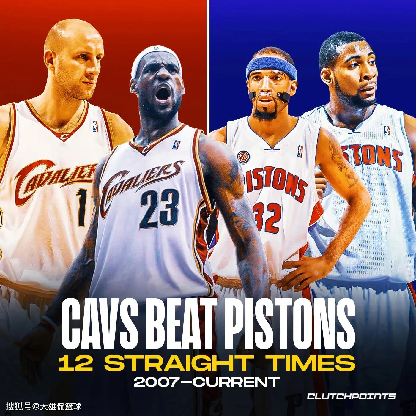克利夫兰骑士从2007年至今,在季后赛面对底特律活塞的时候,连续12次击败对方。底特律活塞当年的防守,堪称联盟噩梦。但是,勒布朗詹姆斯成长起来以后,他们在季后赛面对活塞,就没有输过。