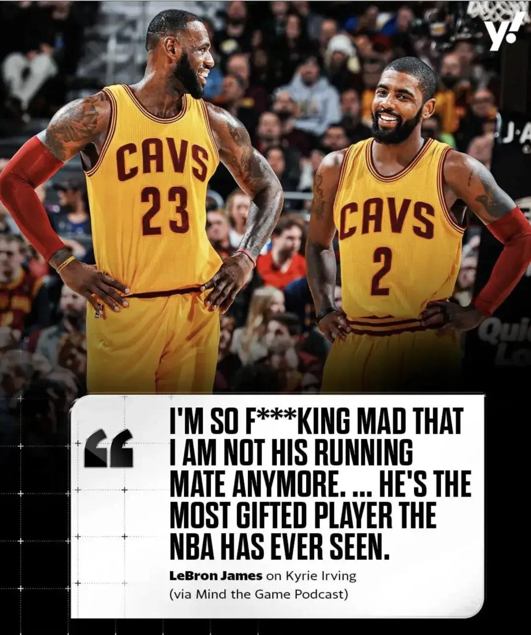 众所周知,近日的詹姆斯再一次表达了对欧文的喜爱。他在节目中说道:“欧文是巫师,能做到球场上的任何事。我真的太高兴和骄傲了,看到他不断成长。同时我也真是太生气了,因为我不再是他的搭档……他是我见过NBA有史以来最有天赋的球员。”