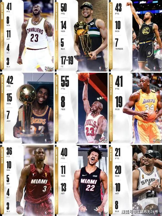 到了总决赛这个舞台上,任何一名球员都不会再有保留,这不仅仅意味着他们距离总冠军只差一步之遥,同时这也是他们扬名立万的大好机会。要是谁能在总决赛上打出一场史诗级别的个人表现,那他必然将在NBA的历史长河中写下浓墨重彩的一笔。