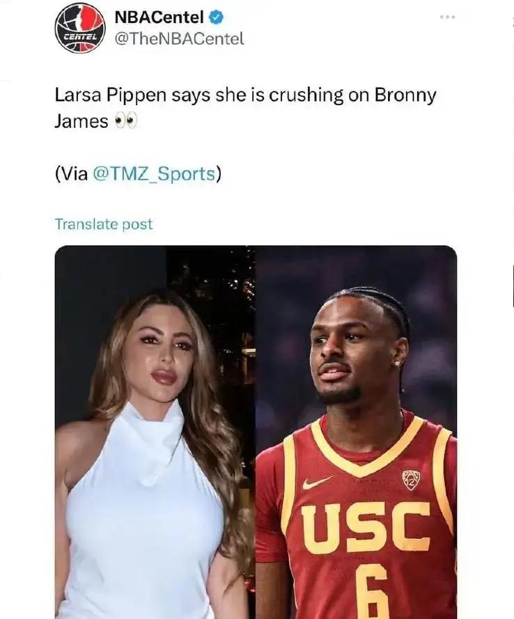 或许是乔丹儿子的关注度已经不能满足拉尔萨,近期,拉尔萨的出击也是让詹姆斯慌了。众所皆知,近期,詹姆斯19岁的儿子布朗尼正在为忙着冲击NBA做准备,在詹姆斯的加持和布朗尼自身的努力下,虽然布朗尼很难在选秀中重复父亲的辉煌,但是布朗尼还是很有可能在第二轮被选中。