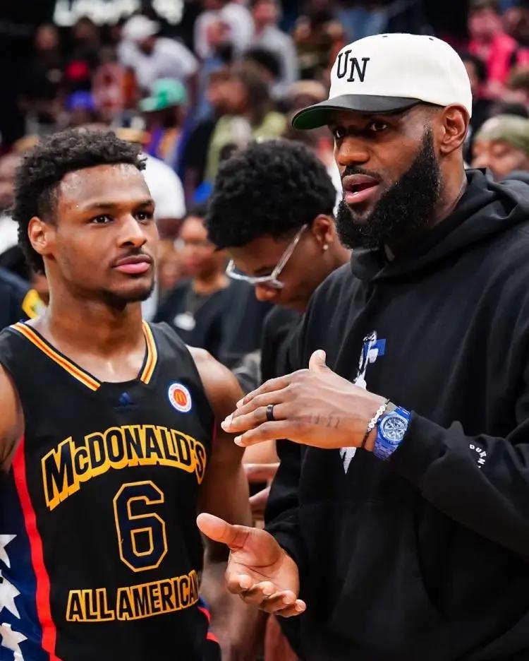 直播吧6月28日讯 NBA选秀大会,19岁的南加州大学后卫布朗尼被湖人在第55顺位选中,詹姆斯父子同台即将上演。
