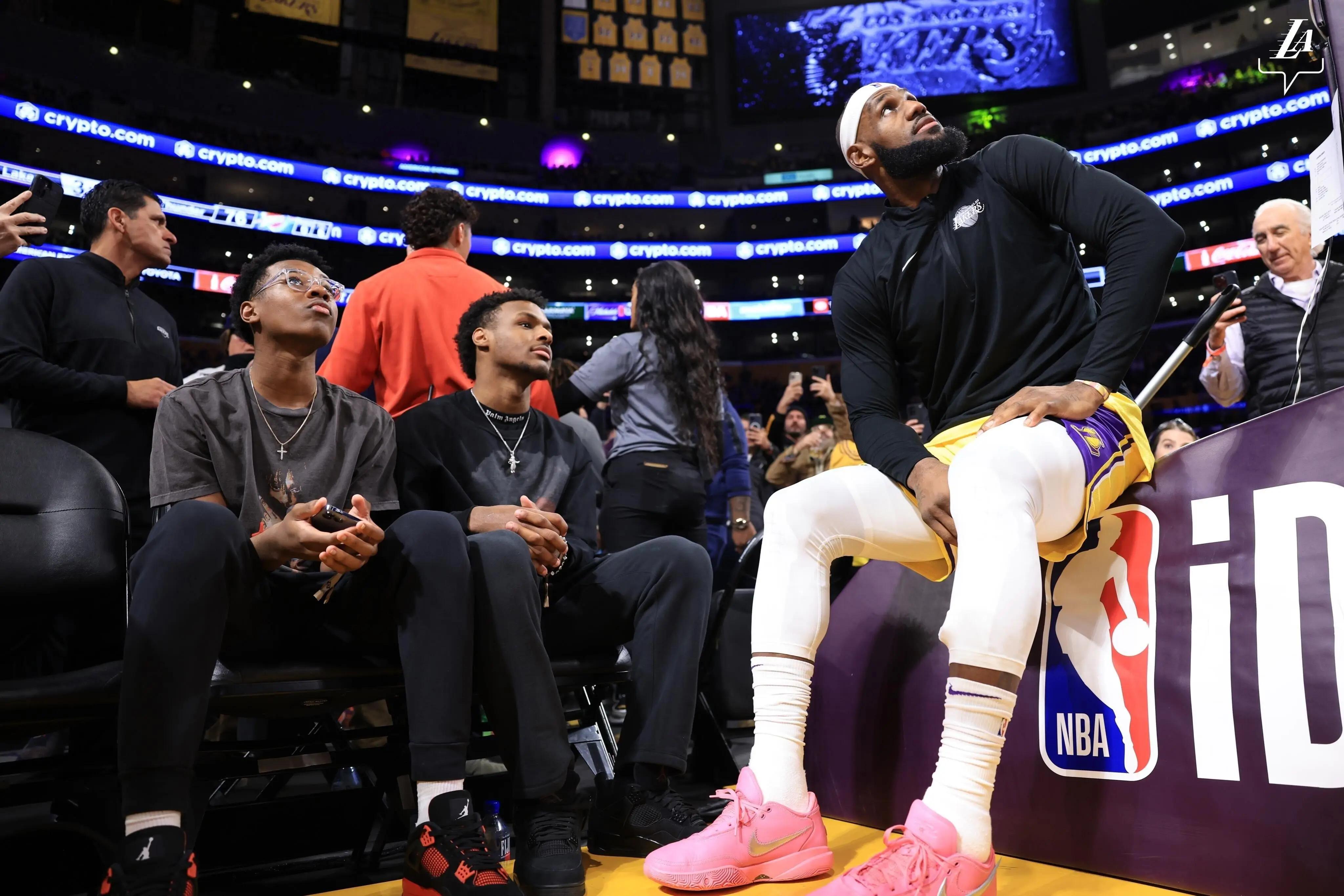 直播吧6月28日讯 NBA选秀大会,19岁的南加州大学后卫布朗尼-詹姆斯被湖人在第55顺位选中。